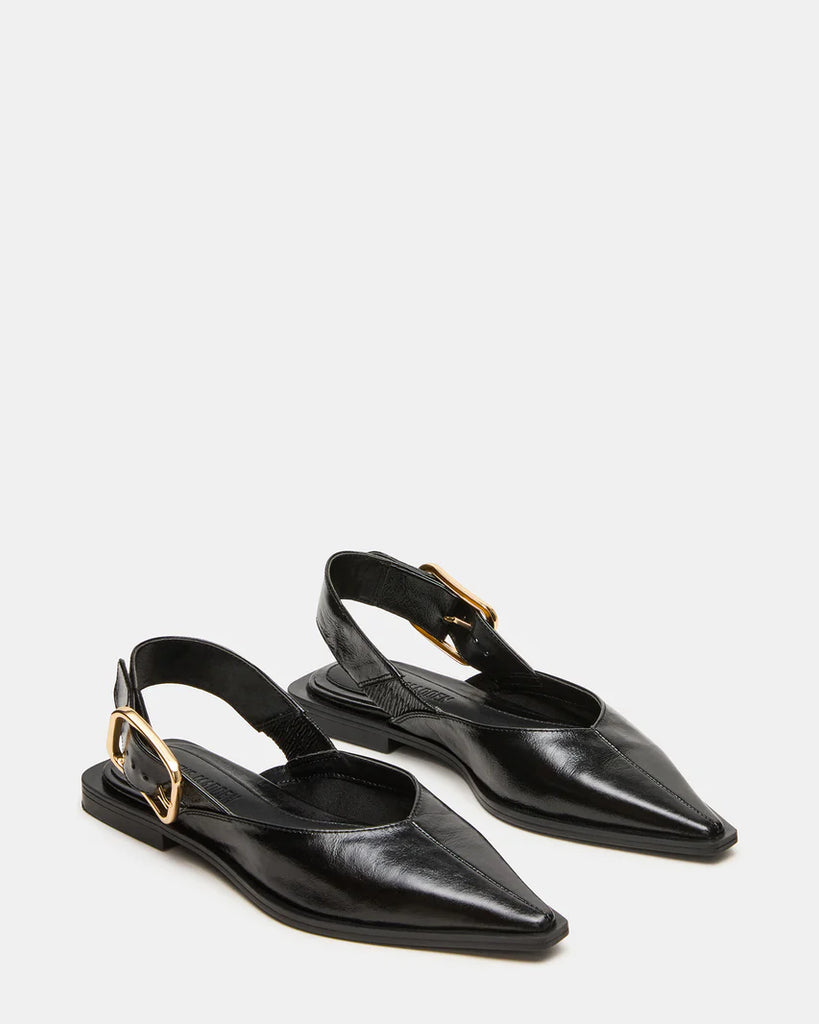 The SHAY BLACK LEATHER is a pointed-toe slingback ballet flat that combines refined style with comfort. Crafted from quality materials, it offers a sleek silhouette perfect for both professional and casual settings. The slingback design ensures a secure fit while maintaining breathability, making it an ideal choice for all-day wear. This flat balances elegance and practicality, enhancing your wardrobe with a versatile, expert-approved footwear option.