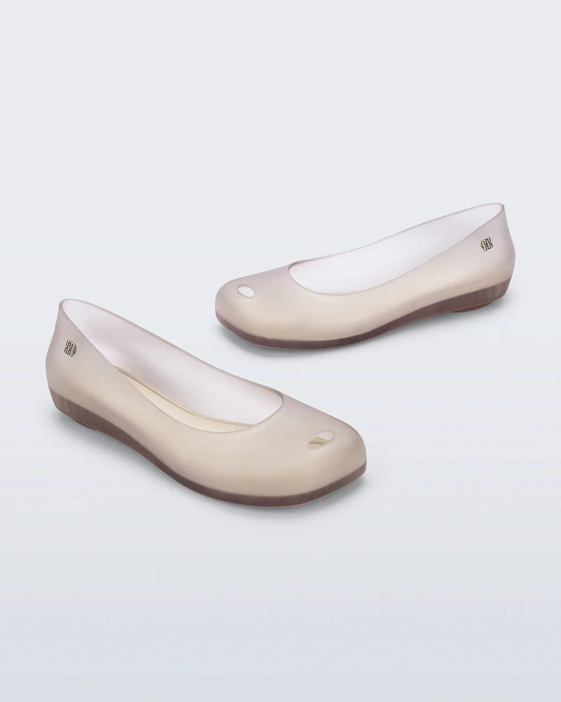 The Melissa Ultragirl Futura ballet flat is the classic Ultragirl revisited, inspired by the barefoot movement and tabis. What about combining freedom and protection for the feet? That's what Ultragirl Futura does. Its minimalist and flexible design mimics the feeling of walking barefoot and allows a more natural movement. Respecting the foot's anatomy, the separation of the big toe, characteristic of tabis, offers greater comfort and stability. Ideal for those seeking a lightweight and functional shoe that promotes posture and strengthens foot muscles without compromising style and practicality. Upper: single-piece Full Plastic PVC; Insole: Grenflex with screen printing and frequency.