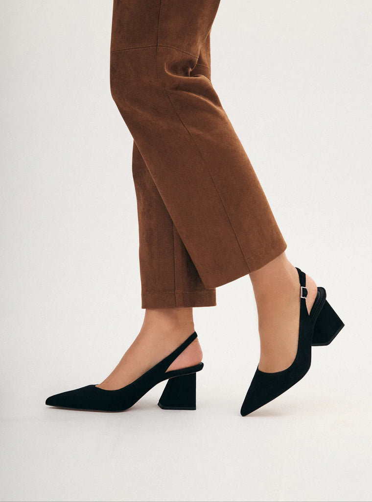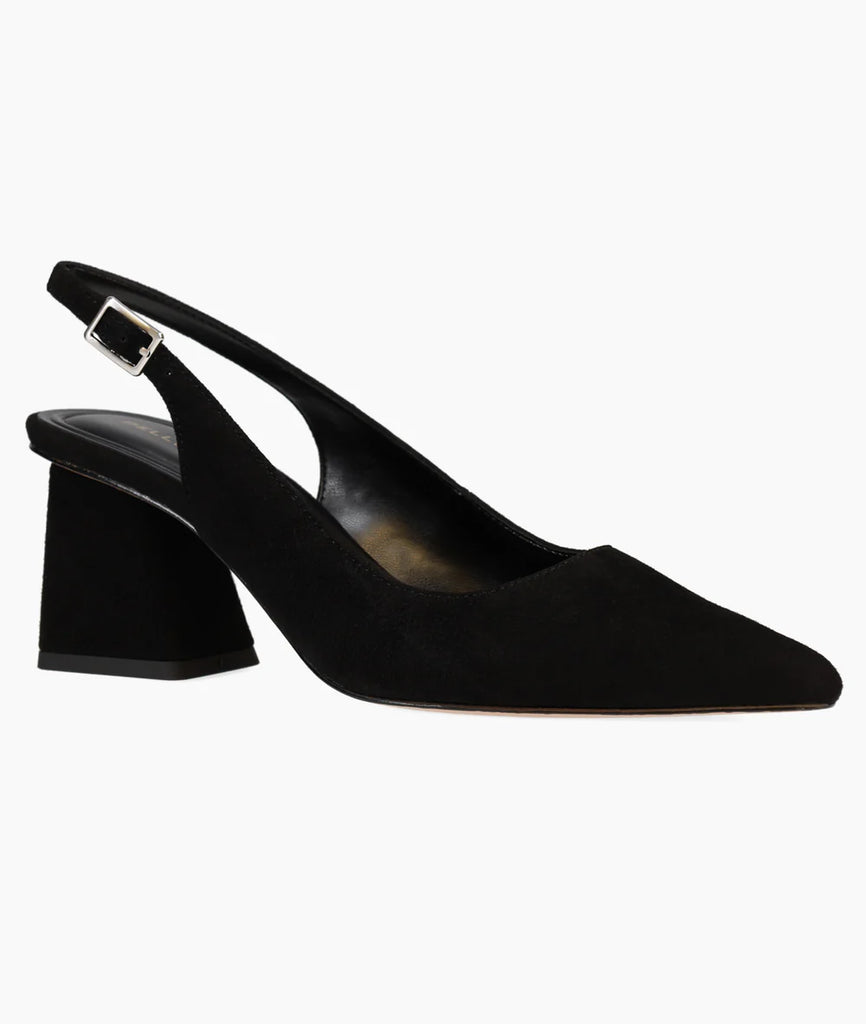 Material: Black Kid SuedeClosure: SlingbackLining: SyntheticOutsole: LeatherHeel Height: 2.3 in.
