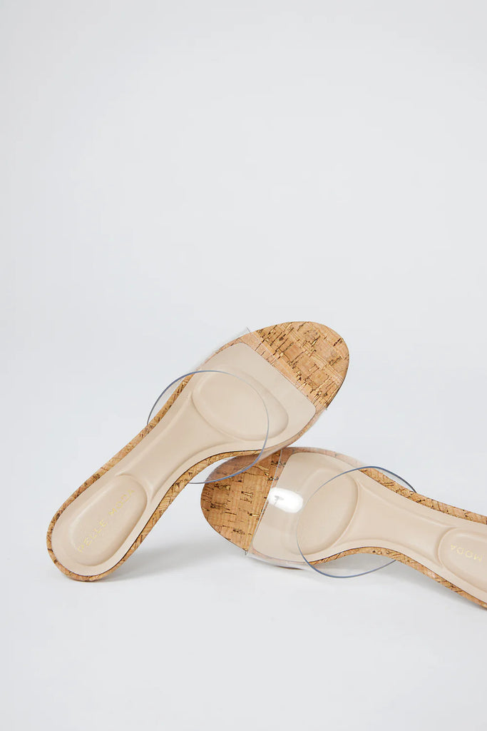 Color/Material: Clear Vinyl, Natural CorkClosure: N/ALining: SyntheticOutsole: LeatherHeel Height: 2.1"